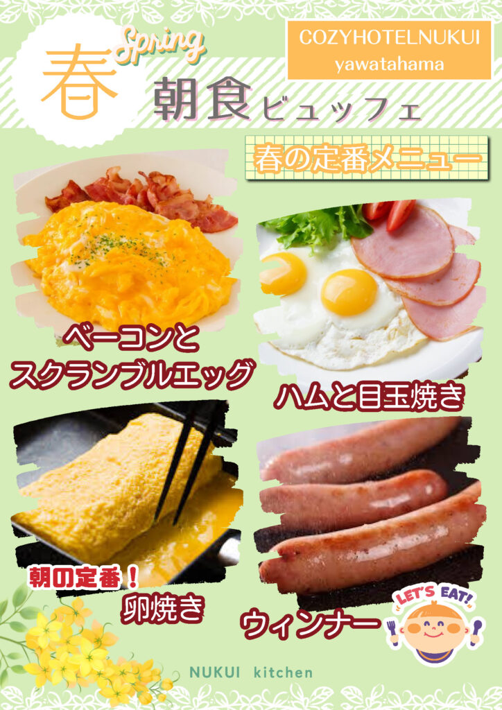 ご宿泊の際は、ぜひ春の朝食ビュッフェをお楽しみください。
