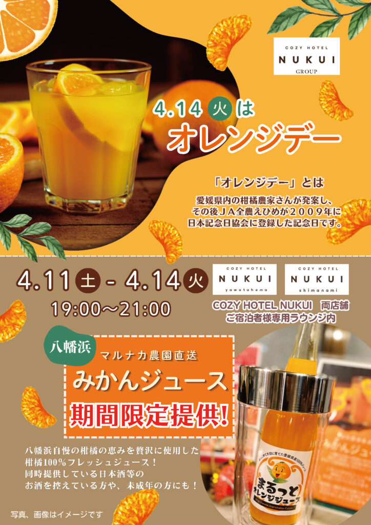 愛媛発祥の記念日「オレンジデー」にちなんだ特別サービスを実施いたします。