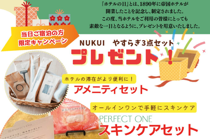 11月20日は、「ホテルの日」。当ホテルではこれを記念し、当日ご宿泊者様限定にて、特別プレゼント企画を実施いたします。 ■プレゼン...