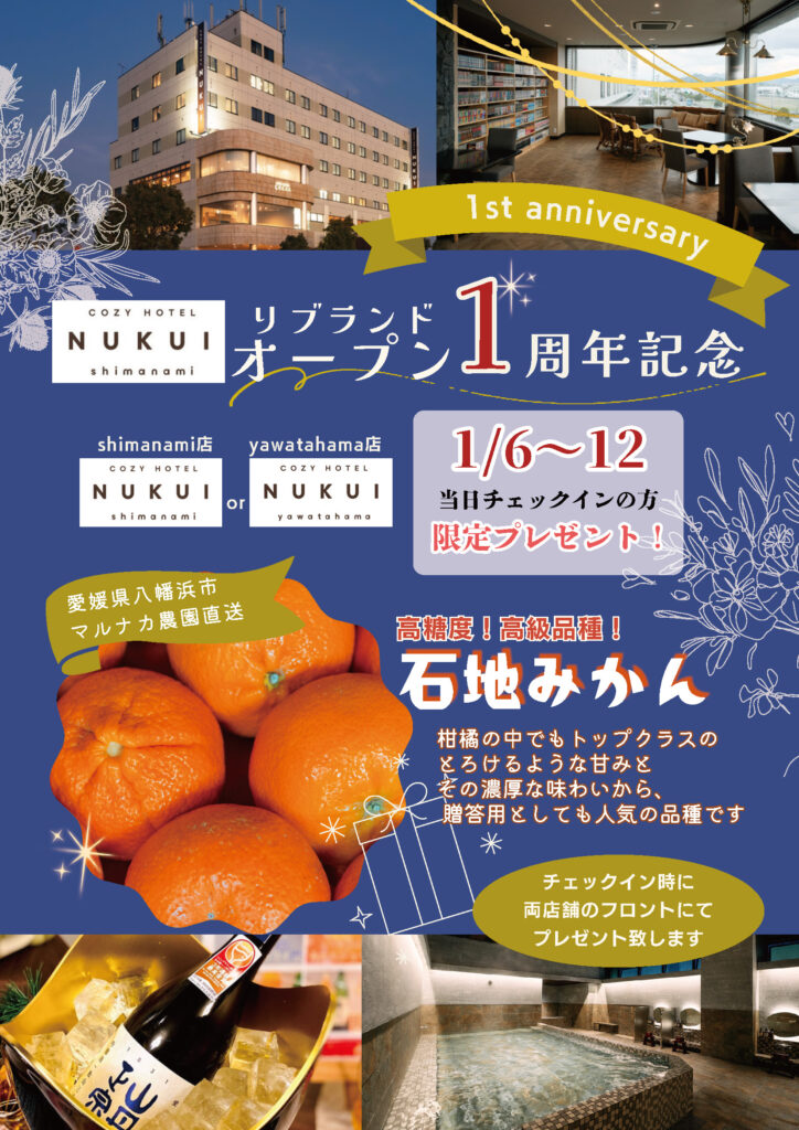 COZY HOTEL NUKUI shimanamiは、この1月にリブランドオープンから 1周年 を迎えることができました。 そこで日頃のご愛顧への感謝の気持ちを込めて、期間限定のプレゼント企画を実施いたします。 【1周 […]