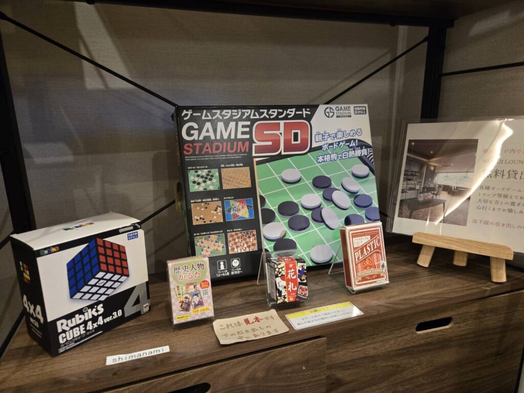 各種ボードゲーム、ルービックキューブ、トランプなど揃えております。